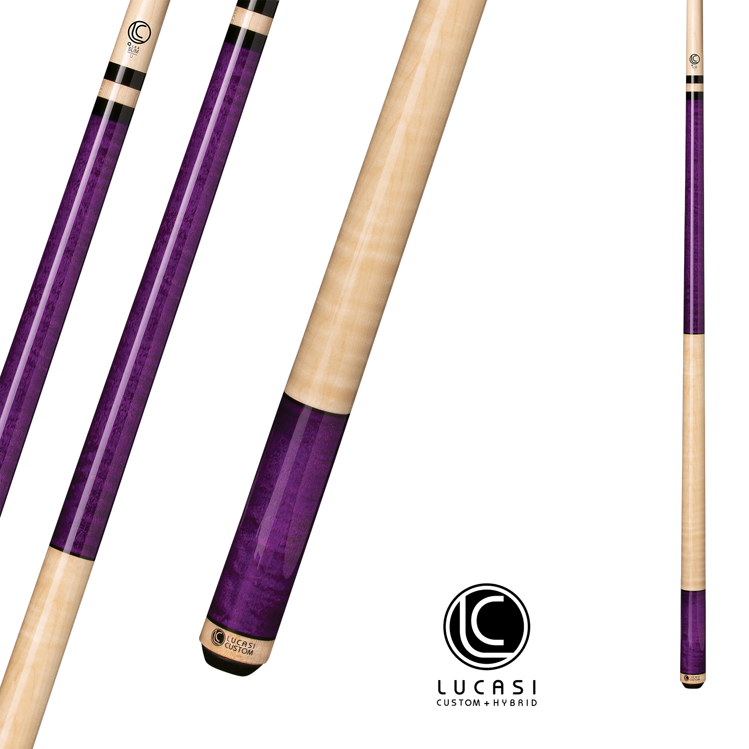 LUCASI POOL CUE CUSTOM PURPLE STAINED AND NATURAL BIRDSEYE 13MM 19OZ